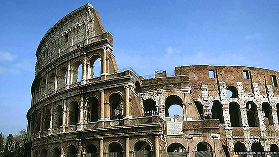 A Colosseum, mely az örök város jelképének számít. A Kr. utáni első században Vespasianus császár uralkodása alatt kezdték építeni, és Titus idején fejezték be. Róma legnagyobb amfiteátruma volt.