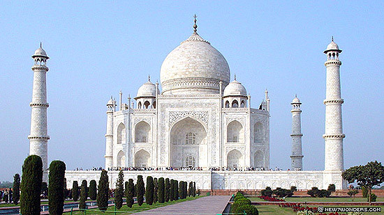 A Tádzs Mahal, melyet az indiai Agrában Sáhdzahán nagymogul épített a XVII. században felesége, Mumtaz Mahal mauzóleumául, aki gyermeke születésekor vesztette életét. A fehér márvány épületet évente 3 millióan keresik fel.