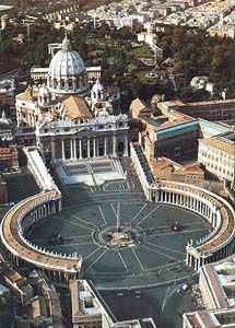 Lorenzo Bernini(1598-1680) ,a barokk kor géniusza két monumentális oszlopos folyosóval, ú.n. kolonnáddal fogja körbe a székegyház nagy terét.