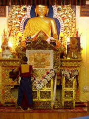A templom belsejében viszont már teljesen fesztelen légkör fogad. A hagyományos tibeti ünneplőruhába öltözött nők és férfiak, idősek és fiatalok, borotvált fejű buddhista szerzetesek és szerzetesnők között sok nyugati hippi vagy a himalájai túrázás után megpihenő gyalogló is várakozik. Mindenki megkeresi az előző napokban nevével felcímkézett és a padlóra ragasztott ülőhelyfoglaló papírjait, ám az indiai tömegközlekedésen szocializálódott helybélieknek nehéz elmagyarázni, miért nem jó, ha olyan helyre ülnek, amelyen nem a saját nevük szerepel… Végre elcsendesül a moraj, a tekintetek az ajtó felé szegeződnek. Két gépfegyveres őr lép az emberek ezreivel telt csarnok-együttesbe, azután még több testőr gyűrűjében megérkezik a mindig mosolygós láma is. Elneveti magát, és mindenkit teával kínál. Néhány pillanat múlva irdatlan méretű teáskannák bukkannak fel a fejek felett és indulnak kézről kézre. Jakvajas tea. Az első kortyok után a nyugati hallgatók illedelmesen visszafojtják grimaszaikat, majd a félretett bögrékben ujjnyi vastag vajréteg szilárdul meg. Hiába, a jakvajas tea nem kisasszonysport.