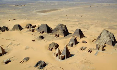 A Nílustól nyugatra fekvő Meroé az ókori Afrika egyik leghatalmasabb királyságának volt a központja. Az ország a különböző kultúrák találkozási pontján helyezkedett el. Meroé a mai Szudán területén található. Kartúmból vonattal, vagy busszal lehet Sendibe utazni, innen az utat taxival, vagy busszal tehetjük meg. Maga Meroé a Kábusíja nevű kisváros közelében van. A görög történetíró Hérodotosz a Kr. e. IV: században említi Etiópiát, az Egyiptomtól délre eső területe. Az ókori Etiópia nem azonos a mai Etiópiával, hanem a mai Szudánt jelöli. Hérodotosz leírása említést tesz egy szent helyről, mely a Nap asztala nevet viseli. Meroé királyának hivatalnokai minden éjjel főtt húst hordtak az asztalra, amiből mindenki ehetett. Meroé volt a székhelye az azonos nevű birodalomnak, mely a Kr. e. IV. és Kr. u. III. század között nagy jelentőségre tett szert a Nílus partvidéke mentén. A királyság Egyiptommal szoros kapcsolatot ápolt, mely a kultúrájára erős befolyást gyakorolt. A város központjában tárták fel az úgynevezett Nap-templomot. Arra, hogy a Nap volt a legszentebb égitest, a kiásott, Napot ábrázoló kőtömb is utal. A templom domborművei a győztes harcoknak, hódításoknak állítanak emléket. Meroé módszeres feltárása a XX. század elején kezdődött. Síremlékeket, szakrális építményeket, kerámiákat, drágaköveket, finom ötvösmunkákat hoztak az ásatások a felszínre. A tárgyi leletek mellett megoldatlan problémák is felmerültek. Nem maradt nyom az itt élő nép nyelvéről, így valódi kilétüket illetően csak feltételezések vannak. Egyes vélemények szerint a területet korábban az egyiptomiak uralták, sokszor ide menekültek az idegen hódítók, például a délről származó kusiták elől. Erre utal a számtalan egyiptomi hatás, például az Ápisz, Amon és Ízisz templomok. Az épületek formája is ezt a feltevést bizonyítja: vastag, ék alakban végződő falak, kétdimenziós, frontális szobrokkal. A királyokat, királynőket piramisba temették, melyeket faragott mészkövekkel és téglákkal borítottak. Az ókori etiópok számos egyiptomi istent imádtak, de a sajátjukat is tisztelték: Apedemakot, a háború és a termékenység istenét. Az egyiptomiak mellet azonban más népek kultúrája is nyomot hagyott Meroén. Közel-keleti, talán perzsa nyomok mellett a római fürdők másai is megfigyelhetőek. Meroé lakói tehát átvették a különböző hódító népek kultúráját. Az ábrázolásokon gyakran szerepelnek oroszlánok és elefántok. Ezeknek az állatoknak valószínűleg kiemelt szerepük lehetett. A bronzot, üveget, ezüstöt külföldről hozatták, vasérclelőhelyben azonban bőséggel rendelkeztek. Valószínűleg ennek köszönhette gazdagságát Meroé, lakóiról azonban a mai napig keveset tudunk.
