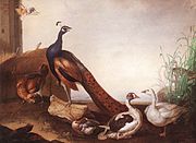 Egyetlen ismert gouache festménye a rá legjellemzőbb madárképek közül való. Baromficsendéletet ábrázol galambokkal, tyúkokkal, pávával, kacsával és libákkal egy majorudvar szélén. A mű keletkezési ideje, festményeivel egybevetve, a kompozíció áttekinthetősége, a világos színezés, a kissé rajzos, sima festésmód és az ábrázolás plaszticitása alapján, szemben korábbi műveinek tömöttebb komponálásával, sötétebb színeivel és lazább formaadásával az 1710-es évek elejére tehető.
