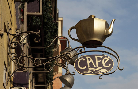 A kocsmák, fogadók cégére még a római időkből ered. A légiók táborában lándzsára tűzött szalmaköteggel jelölték meg a lovak abrakoló helyét, a középkorban ez lett a sörkimérés jele, a borkimérést többnyire az ajtó fölé akasztott szőlőfürt hirdette. A vendégfogadók cégérnek címerképet festettek, benne a mesterjegy általában valamilyen állat lett, így kapta nevét például az Arany Sas, vagy a Fehér Ló fogadó. A 19. század elején a híresebb kocsmák, fogadók neve alapján azonosították az utcát is, később ez fordítva történt, az utca nevét vette át a fogadó.