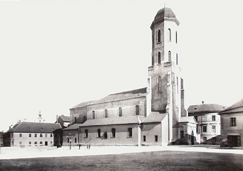 Az egyházközséget a 13. század közepén, közvetlenül a város alapítását követő időben alapították, amely ekkor még a Boldogasszony-plébánia (Mátyás-templom) kápolnájának számított. Az első templom a régészeti ásatások tanúsága szerint kicsiny, egyenes szentélyzáródású, egyhajós épület volt. A 14-15. század fordulóján a magyar polgárság számbeli és anyagi növekedésével párhuzamosan elnyerte egyházközsége számára az önálló plébánia rangját, és elkezdte templomának nagyszabású újjáépítését. A munkálatok a 15. század végére zárultak le, ekkorra épült fel teljesen a hat boltszakaszból álló háromhajós, nyújtott szentéllyel rendelkező késő gótikus épület nyugati homlokzatának tengelyében az öt emeletes toronnyal. A hajó belső terének bazilikális elrendezése és méretei ma is jól megfigyelhetők a torony templom felőli oldalán. A török időkben itt működött a Vár egyetlen keresztény temploma, amelyet megosztva használtak katolikusok és protestánsok. A tizenötéves háború (1591-1606) idején elvették a keresztényektől az épületet és ezután, mint muzulmán imahely Fetih (Győzelem), illetve Szaát (Órás) dzsámiként volt ismert.