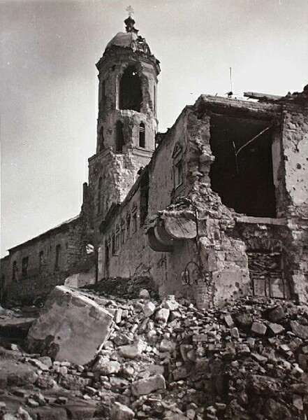 1945-ben, Budapest ostrománál az épület súlyosan megrongálódott. A hajó és a szentély boltozatai beszakadtak, a torony negyedik emeletét belövés lyukasztotta át. A romok alatt maradtak a templomi berendezések és oltárok, a legtöbb tárgy elpusztult. Bár az ostrom után közvetlenül megkezdődött a templom újjáépítése, a változó politikai helyzet azonban már nem tette lehetővé a teljes helyreállítást. A tábori püspökség megszüntetésével a templom fenntartó nélkül maradt, az épület sorsát pedig kedvezőtlenül befolyásolta a Magyar Királyi Honvédséghez kötődő múltja. Sajnos a műemlékvédelem szempontjait csak a gótikus torony esetében sikerült érvényre juttatni. A komoly sérüléseket szenvedett torony helyreállítása 1950-ben megkezdődött, ezzel egy időben a templom épületét szakaszonként lebontották.