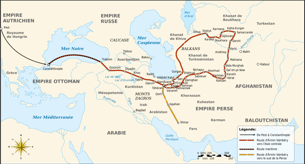 Vámbéry útja Közép-Ázsiában (nagyítható!)