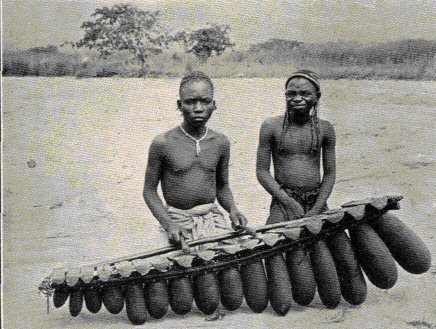 Tökhéjból készült ütőhangszeren játszó bambalák
