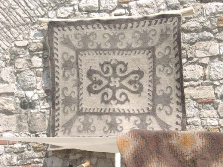 Textíliáink jelentős részét növényi rostokból állítják elő, Belső-Ázsia lovas népei azonban már a Krisztus előtti első évezredben felfedezték, hogy az állati eredetű rostok is alkalmasak ruháik alapanyagának. A technika, amelyet a kezdettől fogva használtak ugyanolyan ősi, mint a szövés vagy a fonás és az így kapott anyag – a nemez – kellemesen puha, bolyhos, levegő-áteresztő és védelmet nyújt a szélsőséges éghajlat ellen. Maga a “nemez” szó iráni (perzsa) eredetű és jelentése: “ver”; a nemezt készítésénél ugyanis összedöngölik, “összeverik”, illetve kallálják (összegyúrják). A nemezelés legkeletibb határa a Kínai Nagy Fal, legnyugatibb a Kárpát-medence volt; sem Amerika, sem Afrika nem ismerte csak az eurázsiai sztyepvidéken élő népek használták. Olyan népek készítették, amelyekre az európai “kultúra” a pejoratív “lovasnomád” jelzőt sütötte rá. A nemezkészítés őshazája – amint az előbb elmondottakból következik – Belső-Ázsia, úgy mondhatnánk: “Ázsia Szíve” (a Dzsungár-medence és a Takla-makán peremvidéke), azaz “Kínai Turkesztán” (vagy Kelet-Turkesztán). Máshol is tenyésztettek birkát, de a “nemezt” sehol nem “találták föl”. Belső-Ázsia népeinél a nemez létszükséglet volt. Ezek a belső-ázsiai népek még ma is ugyanúgy készítik a nemezt, mint őseik és ugyanarra a célra használják. Valaha, amikor a hagyományok szerint még az istenek a földön laktak – így is kezdhetnénk e történetet. “A sátrak falain nemezből kivágott és körülvarrt istenek szolgálták az embert és védték a rossz, a gonosz szellemek és a szerencsétlenség ellen”. Ha nagy útra indult valaki, nemezszőnyegre ültették, úgy búcsúztak tőle. A nemez vallási és világi szertartásoknak is része volt; a fejedelmet mindig nemeztakarón avatták. Timurt is ilyen szőnyegen emelték magasba. A fehér nemez volt a legértékesebb, mivel a fehér őseinknél a megtiszteltetés színe volt. A szürke nemezt lószerszámok készítéséhez vagy a szegényebbek tárgyaihoz használták. Szakemberek erről így írnak: “A vadjuh háziasítása Belső-Ázsiában zajlott le, és az itteni pásztornépek voltak a nemez feltalálói és ők voltak ezen anyagnak felvirágoztatói is”. Ugyanis Ázsia füves legelőin kevés az építésre alkalmas fa, a gyapjú viszont nagy mennyiségben áll rendelkezésükre. Az állatokkal vonuló pásztoroknak olyan hajlékra van szüksége, amely könnyen szétszedhető, szállítható és gyorsan összerakható. A birkának és a belső-ázsiai taki-lónak elterjedési területe teljesen egybeesik a nemez elterjedési területével. Ezért érthető, hogy a nemezelés kultúrája a Kínai Nagy Fal és a Kárpát-medence között széles sávban alakult ki, amelyhez a bőrmegmunkálás és a szőnyegkészítés művészete is társult.