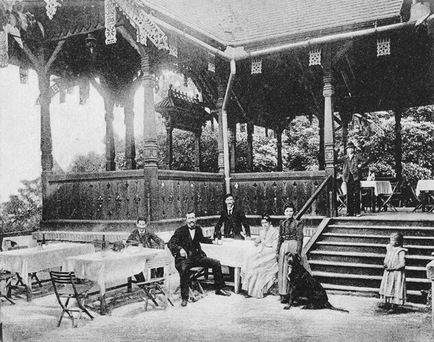 A János-hegyi vendéglő képeslapon, Schikedanz Albert terve alapján.