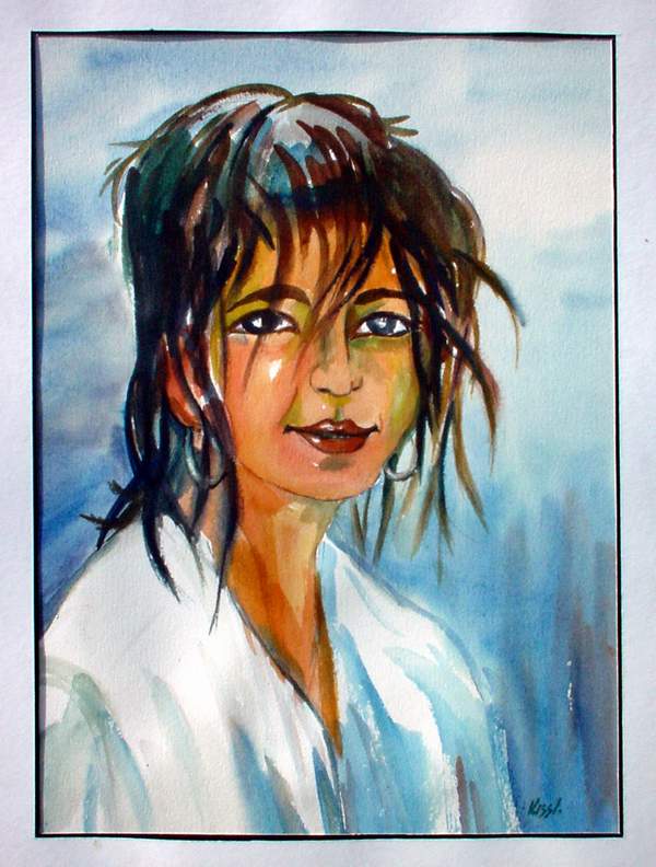 Alig lehetett ráismerni. Nedves haja kéken fénylett és göndörödött. A meleg víz lemosott róla minden patinát. Mintha beolajozták volna, gyönyörű, friss színek ragyogtak rajta, a mézeskalács-sárgától a meleg aranybarnáig.