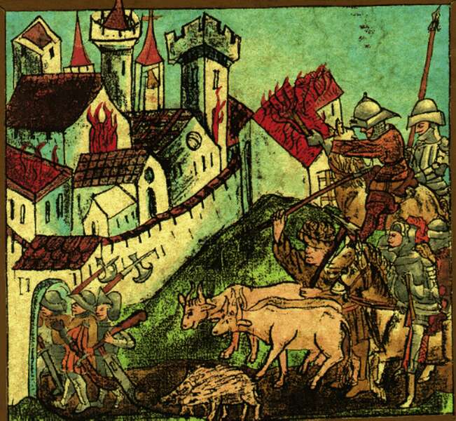 A magyarok megrohanják a szent galleni kolostort, 1451-es miniatúra