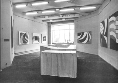 Jovánovics György: A kiállítóterem szabálytalan alaprajzát követő objekt. Budapest, Fényes Adolf Terem, 1970. Megsemmisítve