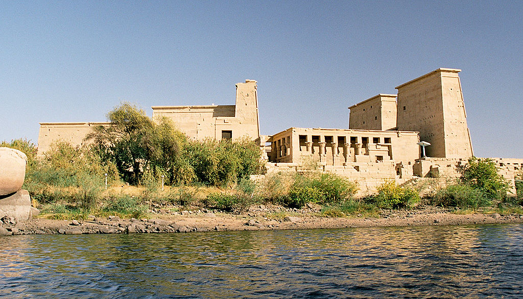 Philae – Ízisz temploma nyugat felől, a Nílusról