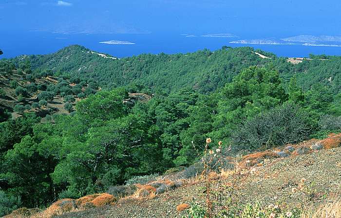 A görög szigetvilág délkeleti részén, Kis-Ázsia partvidékéhez közel fekvő Dodekannésos (gör.: tizenkét sziget) szigetcsoportjának legnagyobb és legjelentősebb szigete Rhodos, amely nevét a mitológiai Rhodé nimfa és Hélios, a napisten gyermekéről, Rhodosról kapta. Későbbi (téves) görög etimológia szerint a sziget neve a ródon, rózsa szóból származik, ennek tudható be, hogy ez a virág díszíti az itt vert pénzek hátlapját. A szigetet először Kréta irányából a minósiak hódították meg és hoztak itt létre kolóniát a mai Trianda településén. A minósiaktól a mykénéiek vették át a sziget feletti ellenőrzést, ennek a folyamatnak a lenyomata jól megfigyelhető Trianda régészeti ásatásokon feltárt rétegeiben is. A mykénéi anyagi kultúra, temetkezési szokások a sziget egész területén egyeduralkodóakká váltak. Az argolisi import kerámia mellett a helyi készítésű mykénéi kerámia is hamar megjelent. A helyi kerámiaművesség egyedi, regionális elterjedésű típusokat is kialakított (pl. a jellegzetes három lábon álló ún. kosáralakú edényeket). Ezt követően a sziget dór uralom alá került.