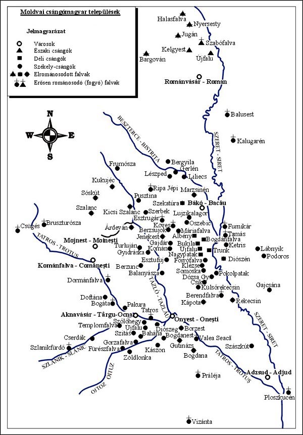 A moldvai csángók a mohácsi vészig a magyar királyok védelmét élvezték, papjaikat az anyaországtól kapták. Ez a támogatás az ország három részre szakadásával megszűnt; a falvak magukra maradtak és elszigetelődtek az őket körülvevő idegen tengerben, magyar nyelvű iskoláik megszűntek. Moldva és Havasalföld ortodox keresztény vallás ellensúlyozására Róma misszionáriusokat küldött a moldvai csángók közé, de az 1623 és 1859 között küldött ötven missziós pap között egyetlen magyar sem volt. Ennek ellenére meg tudták tartani római katolikus vallásukat. 1884 óta Iasi-ban (Jászvásár) római katolikus püspökség működik, ahol az eszes csángó-magyarokból román papokat nevelnek. 1950-ben az utolsó magyar iskoláik is megszűntek és ősi népviseletüket is a ’70-es években kezdték levetni. A román statisztikák szerint 250 000 katolikus él Moldvában; a becslések szerint ennek egyharmada – 80-100 000 – beszél magyarul.