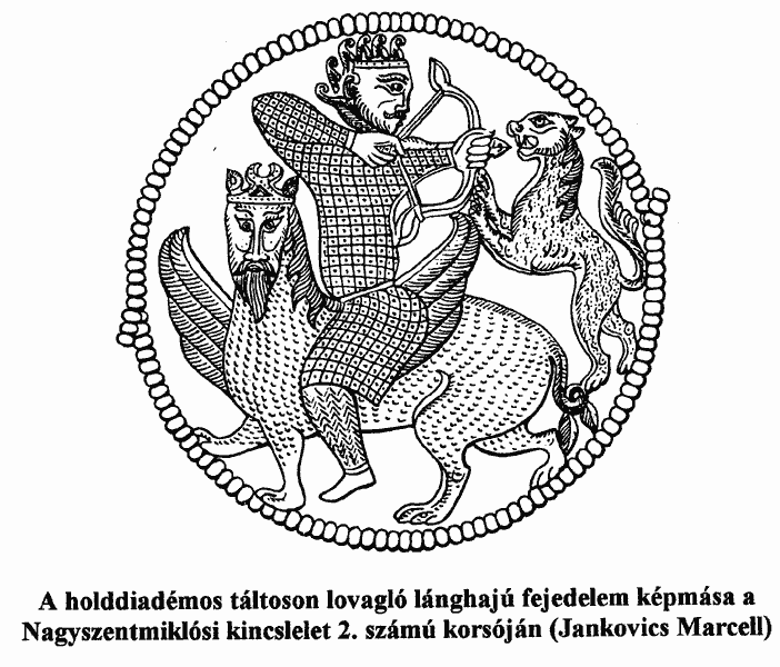 Ősi magyar népmesénk hőse egy „isteni madár”, amely kiszabadítja a Napot, feleséget is szerez magának és a mese végén király lesz. Népmeséinkben egy embert magasba emelő turulmadár alakja is előfordul, amelyet repülés közben etetni és itatni kell; ezt örökíti meg a nagyszentmiklósi 2. számú korsón látható madár, amint karmai között egy nőalakot ment ki a rabságából. Ha a magasba emelt alak férfi, – mint az 5. számú korsón, – akkor a madár a hős társa, aki a társai által cserben (az alvilágban) hagyott hőst segíti vissza az emberek világába, hogy ott visszaszerezze az elrabolt menyasszonyát és az őt megillető trónt. Népművészetünkben is ott van a turul, egyre inkább háttérbe húzódva, pedig a turul a magyarok ősi, feledésbe merült hitvilágának máig fennmaradt főszereplője.