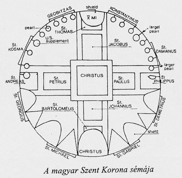 A koronáknak három típusát ismerjük: 1. a házi korona, melyre semmiféle megkötés nem vonatkozik; 2. az országló korona, melyet az uralkodóknak meghatározott alkalmakkor viselni kellett, és 3. a beavató korona, melynek analógiái csak Belső-Ázsiában vannak; európai képviselője egyedül a Magyar Szent Korona. Ezt az uralkodó csak koronázáskor viselheti, amúgy két koronaőr őrzi. Rajtuk kívül csak a nádorispán nyúlhat hozzá, aki koronázáskor párnán a helyszínre viszi és az érsek helyezi a király fejére. A magyarok királyainak koronája az államiság jelképe lett, ebből alakult ki a világon egyedülálló Szentkorona Tan.