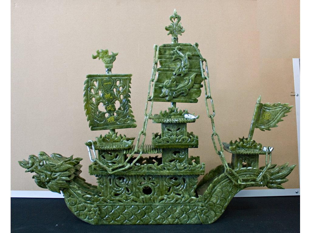 Jade teáskészlet (Korea) | Kézzel faragott kínai jade sárkányhajó | Jade kő Buddha figura