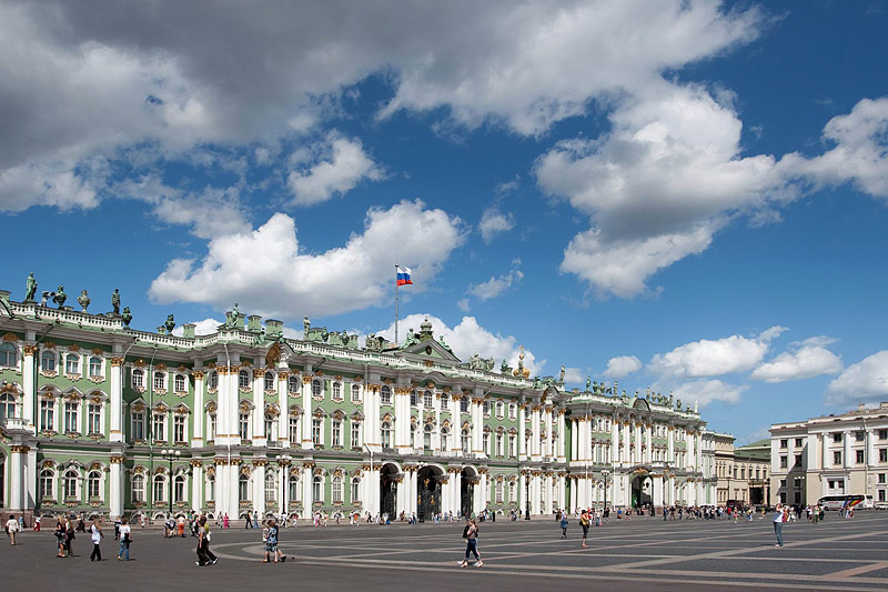 Az Ermitázs eredetileg zárva volt a nyilvánosság előtt. Nagy Katalin cárnő állítólag így gúnyolódott a zárt „remetelak”-on (az „Ermitázs” szó ezt jelenti ugyanis franciául): „Csak én és az egerek gyönyörködünk benne”. Sok a látnivaló: orosz, kínai, japán, indiai, egyiptomi és görög művészeti alkotások. Nyugat-Európa művészetét több mint 120 teremben mutatják be: Leonardo da Vinci, Michelangelo, Raffaello, Tiziano, Velázquez és Rubens jelentős műveit ugyanúgy megcsodálhatjuk, mint a francia impresszionistákat.
