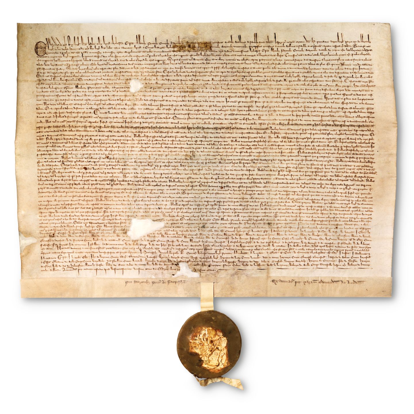 Eredeti példány A Magna Chartának ezt a példányát Faversham bárói kapták; városuk a kikötők Öt város (normannul „Cinque Ports”)