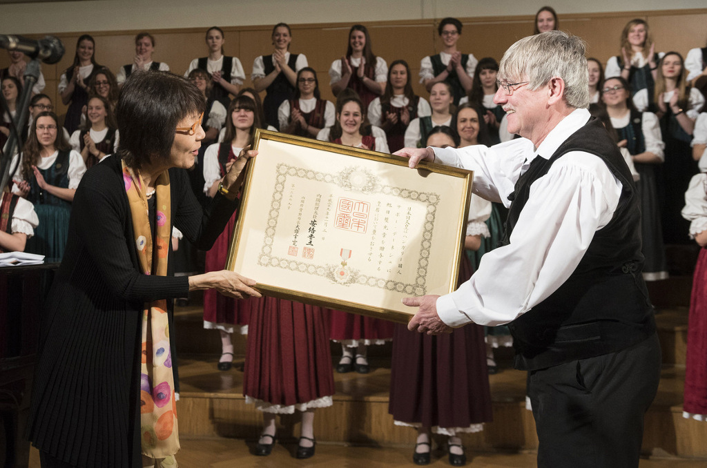 A Felkelő Nap Arany és Ezüst Sugarainak Rendje elnevezésű kitüntetéssel köszönte meg a japán kormány Szabó Dénes karnagynak, a nemzet művészének, az MMA rendes tagjának, hogy a zenén keresztül hozzájárult a Japán és Magyarország közötti kapcsolatok fejlesztéséhez. A magas elismerést Sato Kuni nagykövet asszony adta át azon az ünnepi hangversenyen, amelyet Nyíregyházán, a Kodály Zoltán Általános Iskolában rendeztek.