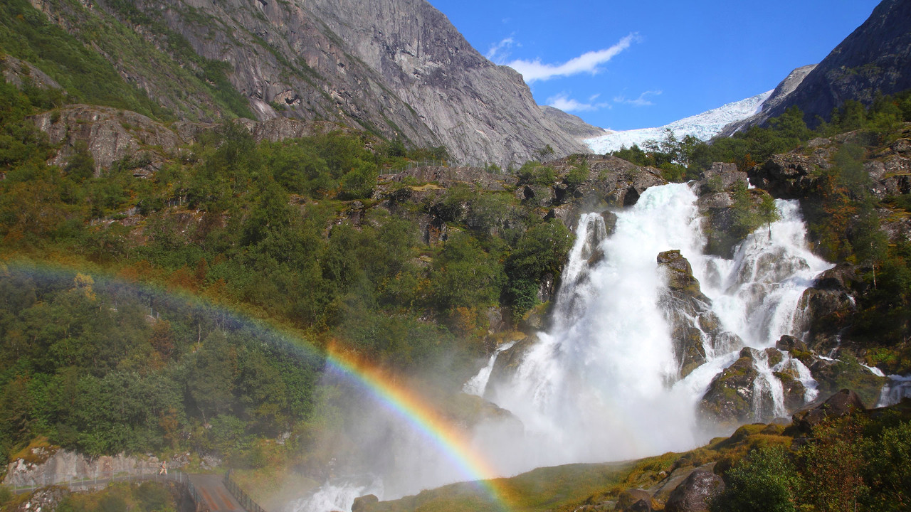 A víz – akár folyik, akár áll, akár a magasból zuhan alá – hozzátartozik a norvég tájhoz. Ezt a vízesést a Jostedalsbreen táplálja, amely 200 négyzetkilométeres kiterjedésével, 500 méteres magasságával Európa legnagyobb gleccsere.