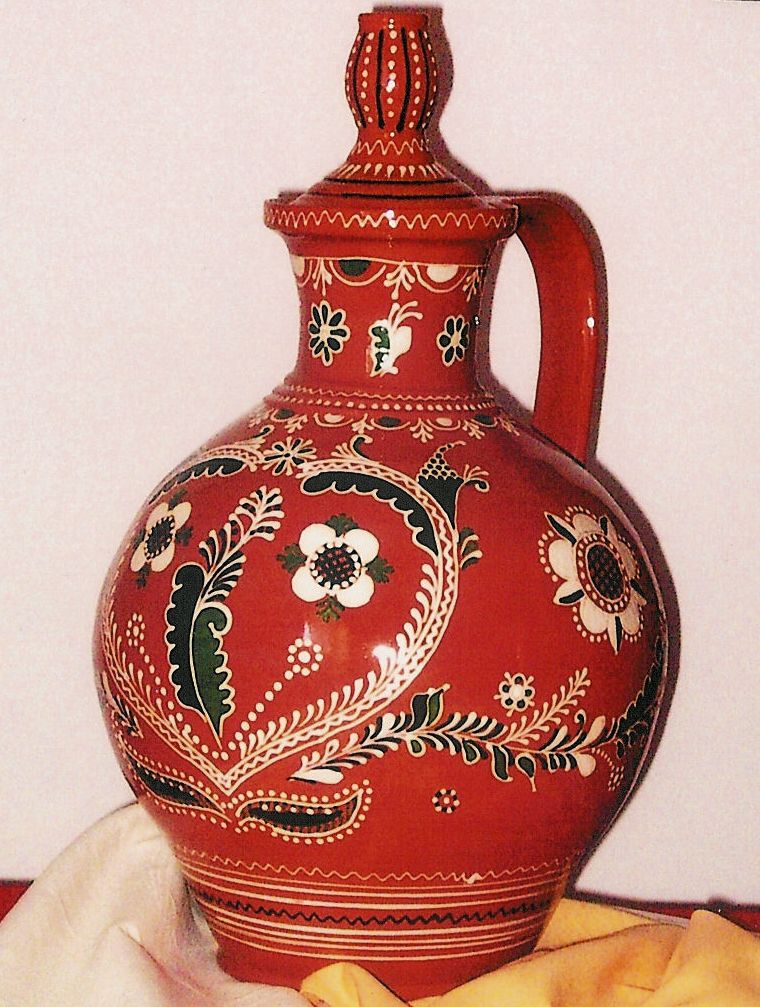 A Debrecenben készített nagyméretű kerámiák némelyike testületi, szertartási edény, javarészt református egyházak számára, úrasztali bor tartására készült. Mint pl. az a két, 1793-as datálású, a rajtuk lévő nagy kerek virágok, karéjos levelek, gránátalmás virágkompozíció feltűnő hasonlósága alapján, egy kéz munkájára valló úrasztali boroskancsó, melyek a bárándi református eklézsia számára készültek.