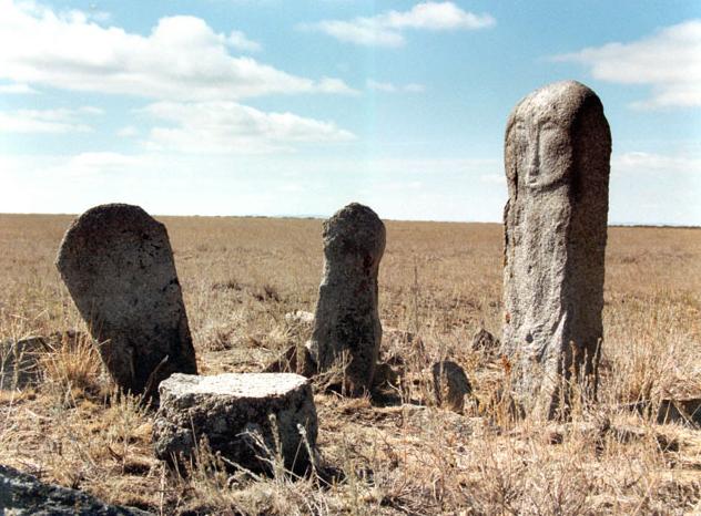 Ukrajnától Mongóliáig szokás volt kőszobrokkal jelölni a sírhelyeket, és a kultikus építményeket (1-2. kép). A szokás a bronzkorig nyúlik vissza, legerősebben mégis a türkökhöz kapcsolódik, és a 7-13. korban élte virágkorát. Általában elnagyolt vonású, tömbszerű figurák ezek, amelyek az akár 3 méteres magasságot is megközelítő, henger alakú kődarabok kivésésével keletkeztek. A részletek – ékszerek, fejfedők, hajviseletek – megformálása gondos és aprólékos, bár egyes bálványoknak csupán a feje szoborszerű. Területi és kronológiai szempontból a kis részletekben sok az eltérés. Mongóliában általában előkelő viselettel mintázták meg őket, s jobbjukat áldásra emelik. A dél-orosz kőbálványok viszont többnyire edényt tartanak mellük előtt összekulcsolt kezükben. Női szobrok esetén többnyire hangsúlyozták a kebleket, még akkor is, ha egyébként ruha fedte a testet. A férfialakok fegyverrel, páncéllal felszereltek. Wilhelm Ruysbroeck (Rubruk, 1210 k. – 1270) ferences szerzetes, IX. Lajos francia király Mongóliába küldött követe felfigyelt e szobrokra és hasznos leírást közölt róluk: „A kunok nagy halmot emelnek a megboldogult felett, és szobrot állítanak neki, mely keletnek néz, és a köldöke előtt serleget tart a kezében” (Gy. Ruitz Izabella fordítása).