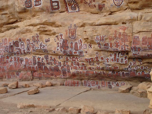 Változatos Dogon szimbólumok a sziklákon