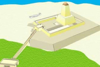 Az abu-ghurabi napszentély rekonstrukciója. A szentély mesterségesen felhányt magaslaton állott, közepén aranyozott hegyű hatalmas obeliszk, előtte a szabad ég alatt terjedelmes oltár. Köröskörül különböző helyiségek. A szentélyhez tartozik a falain kívül levő bárka is, mely nem igazi, hanem téglákból épített utánzat, a napbárka, mert a nap – egyiptomi hit szerint – bárkán teszi meg nappal égi és éjjel földalatti útját.