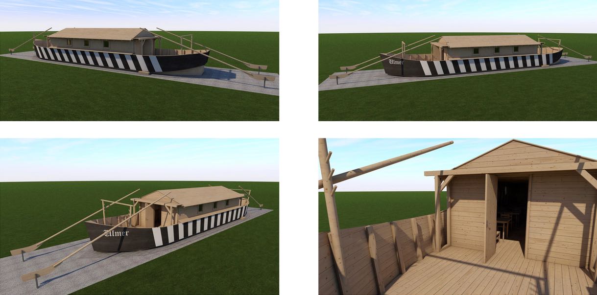 Lapos padlózatával közvetlenül a partig lehetett haladni. Jellemző továbbá a hajótörzsön látható ferde fekete-fehér csíkozás, amely azonban Dr. Henning Petershagen szerint nem Ulm város szimbóluma, hanem a világos fenyőből készült hajón a jobb láthatóságot szolgálta.