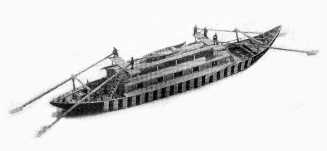 A hajók nagysága és alakja az idők folyamán állandóan változott. Elérték a 15-22 méteres hosszúságot és a 2-5 méteres szélességet is. A hajófal kb. egy méteres volt. Középen állt egy fakunyhó, ahol a telepesek rossz idő esetén menedéket találhattak. A hajót 2-2 rúddal, illetve evezővel irányították, melyek a hajóorrban és a hajófarban voltak elhelyezve.