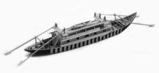 Ulma, az úgynevezett Ulmer Schachtel megépített mása egy ulmi baráti körrel a fedélzetén a Dunán Vácnál 2006-nan. (fozó: Ambach Mónika)