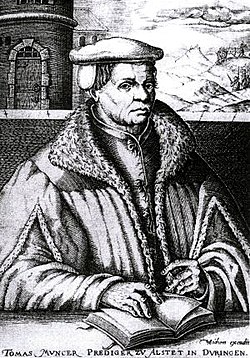Thomas Müntzer anabaptista prédikátor (Korabeli metszet)