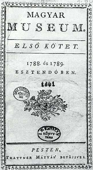 folyóirat, a Kassán kiadott Magyar Museum, amely 400—500 előfizetővel rendelkezett. A lap szerzői Bessenyeihez és a bécsi testőrírókhoz hasonlóan valamennyien magyarul írták műveiket, s magyarul írta a századforduló két kiemelkedő literátora: a debreceni Csokonai Vitéz Mihály és a dunántúli Kisfaludy Sándor is. A kor legnagyobb irodalmi sikere, Dugonics András Etelkája (1788), amely egy érzelmes történetbe ágyazottan a hun-avar-magyar rokonság és a szkítiai közös haza elméletét népszerűsítette, ugyancsak magyarul született, ámbár nagyon régies, ma már szinte élvezhetetlen nyelven.