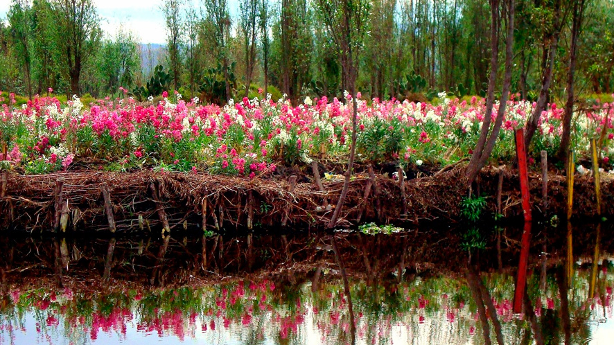 Xochimilco, a „virágmezők helye” valamikor a cölöpökre épült, csatornákkal szabdalt azték fővároshoz, Tenochtitlánhoz tartozott; ennek romjaira építették a mai Mexico Cityt. A mesterséges szigetek közötti csatornákon ma kirándulócsónakok közlekednek.