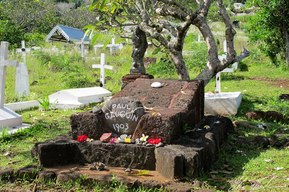 Paul Gauguin, aki a valóságos, hamisítatlan dél-tengeri paradicsomot kereste, 1901-ben Tahitiról az akkor még „érintetlen” Hiva Oa szigetére menekült, s ott is halt meg 1903-ban. Azóta ez a paradicsom sincs többé. | Panoráma Tahitin: a tengerparton pálmafák, nádfedelű cölöpházak, az óceán csendje, a látóhatáron Moorea hegyei – olyan a táj , mint a mesekönyvekben.