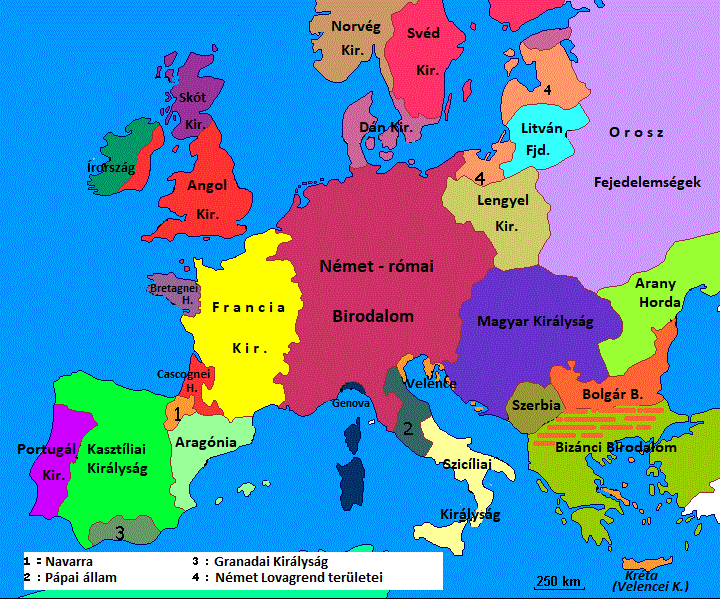 Római Császárság eközben anarchiába süllyedt, Franciaország pedig elindult a felemelkedés útján. Az 1214. július 27-ei bouvines-i csatában II. Fülöp Ágost francia király megsemmisítő vereséget mért az angol-német koalíció csapataira. A német birodalom ezt követően több száz önálló hercegségre, grófságra, érsekségre és szabad városra esett szét, amelyek közül heten emelkedtek ki: a mainzi, a kölni és a trieri érsekség, valamint a szász hercegség, a brandenburgi őrgrófság, a rajna-pfalzi palotagrófság és a cseh királyság. E három egyházi és négy világi hatalom vezetői voltak azok, akik a továbbiakban a német királyt választották, s akiket ezért választófejedelmeknek hívtak. A választófejedelmek a 13. század közepéig csaknem mindig a Hohenstauf-dinasztia leszármazottai mellett döntöttek. Ezt követően viszont különféle családok tagjai váltották egymást a trónon. E főúri famíliák egyike a svájci eredetű Habsburg-család volt, amelynek tagjai közül I. Rudolf viselte először a német királyi koronát 1273 és 1291 között, s aki a Magyar Királysággal szomszédos ausztriai tartományokban is megvetette a lábát.