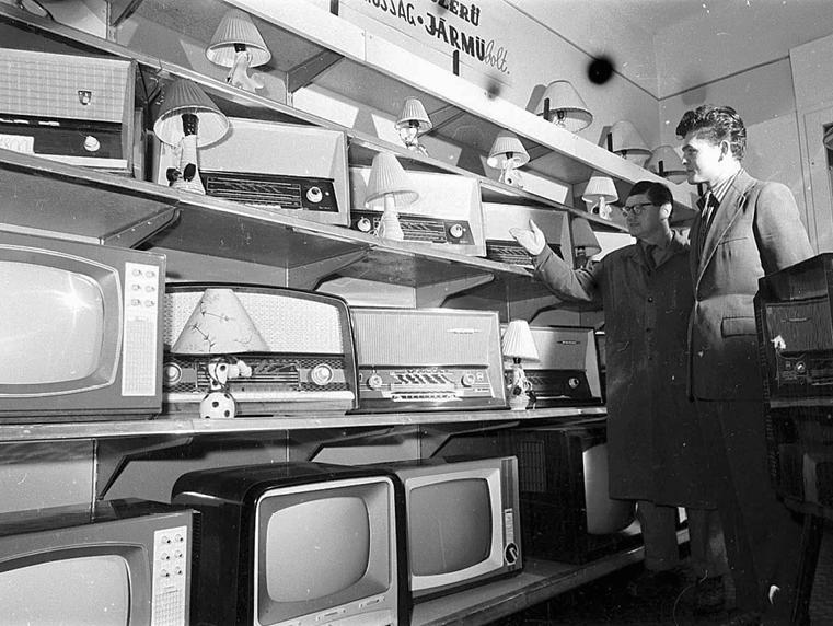 A kereskedelem „fellegvárainak” az ún. nagyáruházak vagy általános áruházak számítottak, amelyekben elvileg mindent meg lehetett vásárolni. Ezek egy része Budapesten, a többi a vidéki nagyvárosokban épült.. A hagyományos szakboltok mellett gyorsan terjedtek az önkiszolgáló üzletek, s a modern nagyvárosi életforma tartozékaként 1964-ben megjelentek Budapesten az első utcai automaták. A községek közel felében ugyanakkor még csak egyetlen vegyesbolt, s 70 %-ukban egyetlen vendéglátóhely – azaz italbolt – működött.