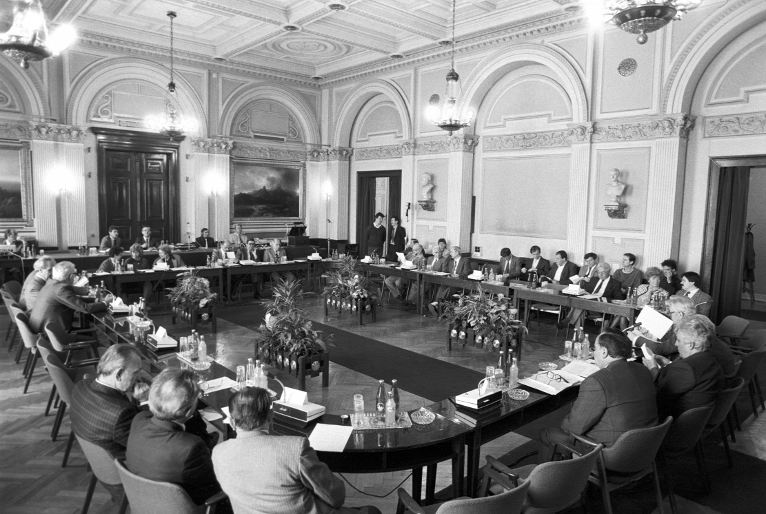 A kerekasztalt előkészítő megbeszélés a Magyar Tudományos Akadémia felolvasótermében Forrás: MTI/Soós Lajos