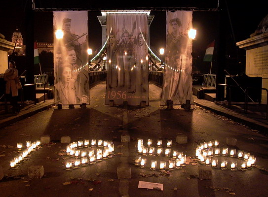 Emlékezés az 1956-os forradalomra – a Lánchídon, 2005-ben (Fotó: Vimola Ágnes)
