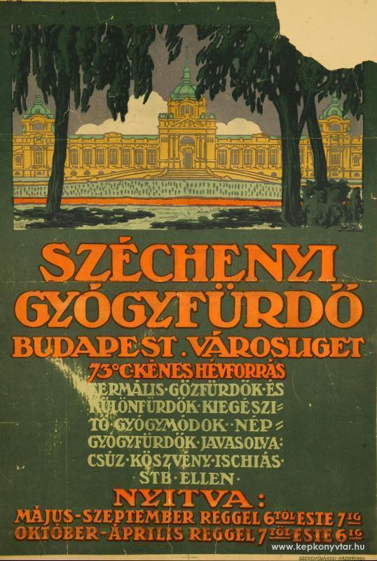 méter volt, a feltörő víz hőmérséklete pedig 74,5 Celsius fok. A második kutat a megnyitás után 23 évvel, Pávai Vajna Ferenc irányításával 1936-ban fúrták. Ennél a víz 1240 méter mélyről jön és 77 Celsius fokos hőmérsékletével Európa egyik legmelegebb hévforrását képezi. A fürdő épületét 1909 és 1913 között Czigler Győző és Dvorzsák Ede tervei szerint építették neobarokk stílusban. A termálfürdő és a strand mellett a Széchenyi Fürdőnek lég- és gőzkamrái, szénsavas és sósfürdői, ivókútjai, iszapkezelő részlegei is vannak. A gyógyvíz elsősorban mozgásszervi betegségek kezelésére alkalmas, az ivókúrák gyomor-, bél-, epe- és légúti betegségek gyógyítására szolgálnak.