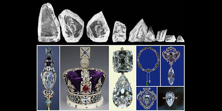 Négy nagy csiszolt gyémánt készült: az „Afrika Nagy Csillaga” nevet viselő, csepp formájú Cullinan I. (530,20 karáttal a világ legnagyobb gyémántja) a brit királyi ház jogarát díszíti; a négyszög alakú Cullinan II. (317, 40 karáttal a második legnagyobb) a király koronáján; a másik két nagyobb gyémánt (94,45, illetve 63,65 karát) pedig a királyné koronáján található (ez utóbbiak kivehetőek és brossként is hordhatóak). Mind a négy ékkövet a londoni Towerben őrzik.